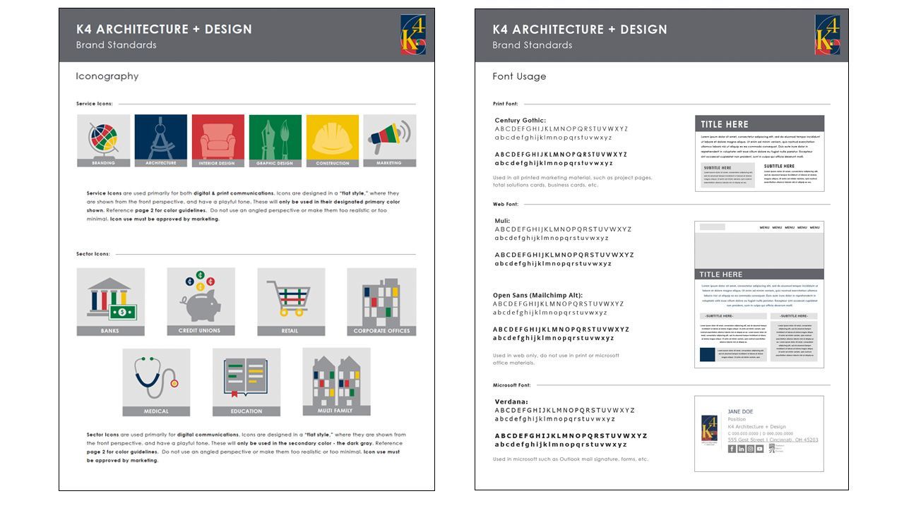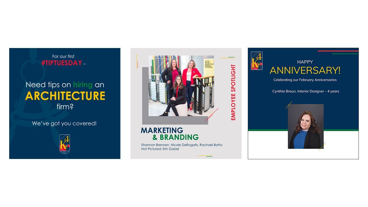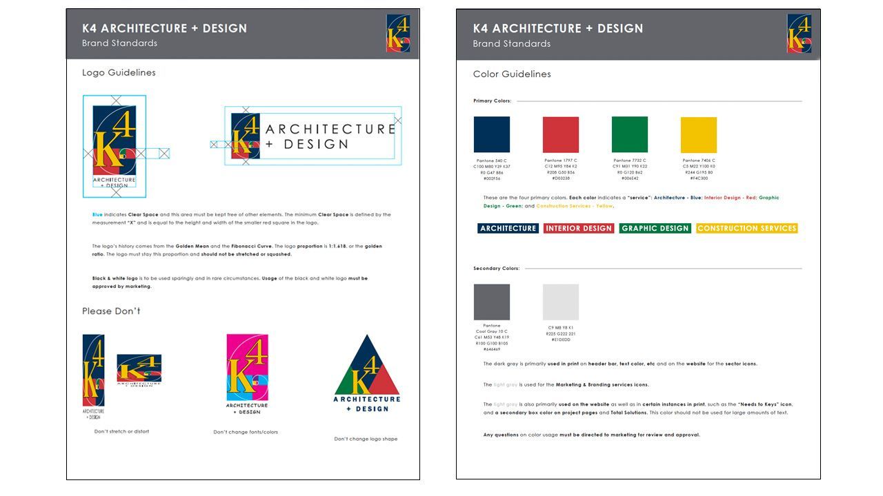 Ever hear the expression “the cobbler has no shoes?” At K4, we can’t let that happen! K4 Architecture + Design is a client of K4 Marketing + Branding, and our family of companies must practice what we preach. Our goal is to be totally brand consistent – from our physical facility to our physical & digital marketing assets. It takes a lot of self-evaluation and constant updating, but we love what we do, and we’d love to do it for you too!