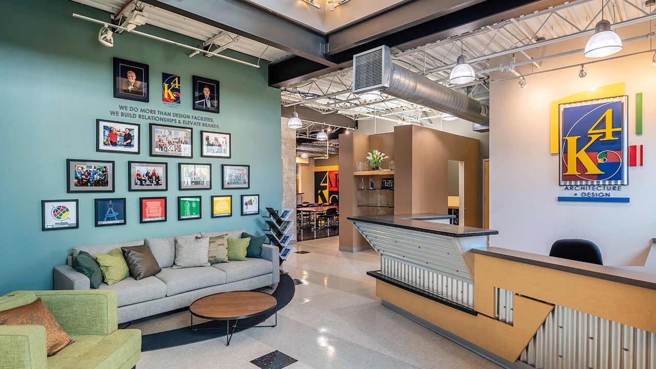 This 24,000 SF, two story K4 self-developed and owned Headquarters was renovated to reflect the nature of K4 and a way to show clients their capabilities as they integrate brand strategy into the facility design.