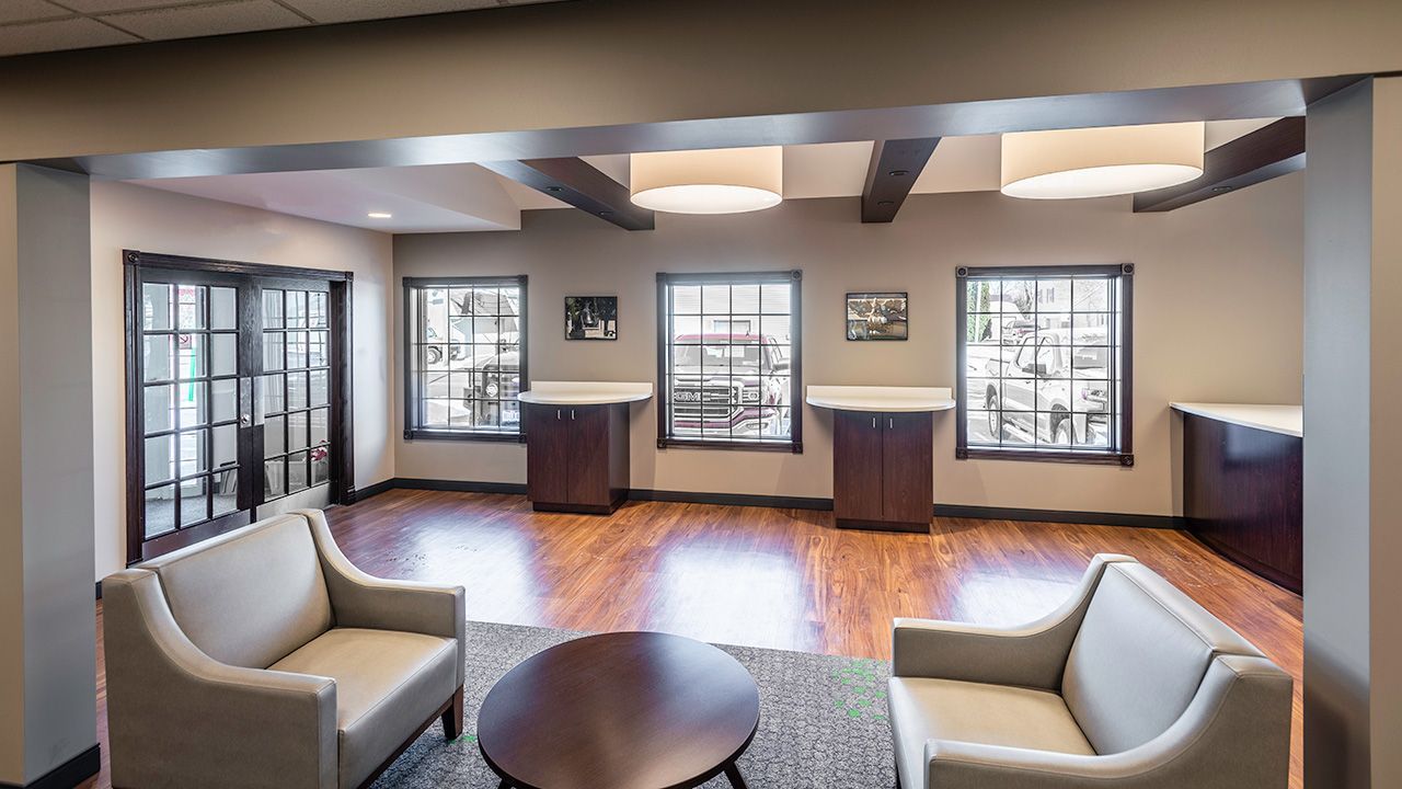 The main focus of the project was the interior remodel and improving efficiency with more substantial lobby space, and re-orienting offices with a clear and direct line of site to lobby and teller areas. New finishes were incorporated to create a timeless feel along with a neutral palette accompanied by wood tones, to add warmth to the space, and to emphasize the green accents of the bank’s established brand elements.
