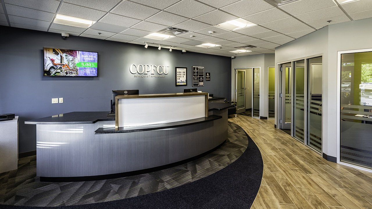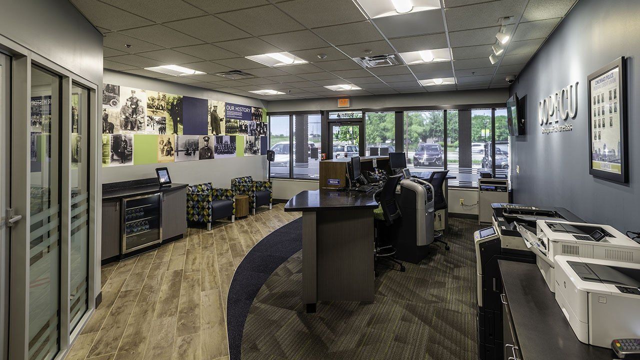 The Cincinnati Ohio Police Federal Credit Union contacted K4 to help design a new branch located in Blue Ash in Cincinnati, OH. The challenge with this location was the small space to work within. However, K4 tackled this challenge head on and was able to fit multiple office spaces, a break room, a teleconference room, and storage in only 1,212 square feet.
