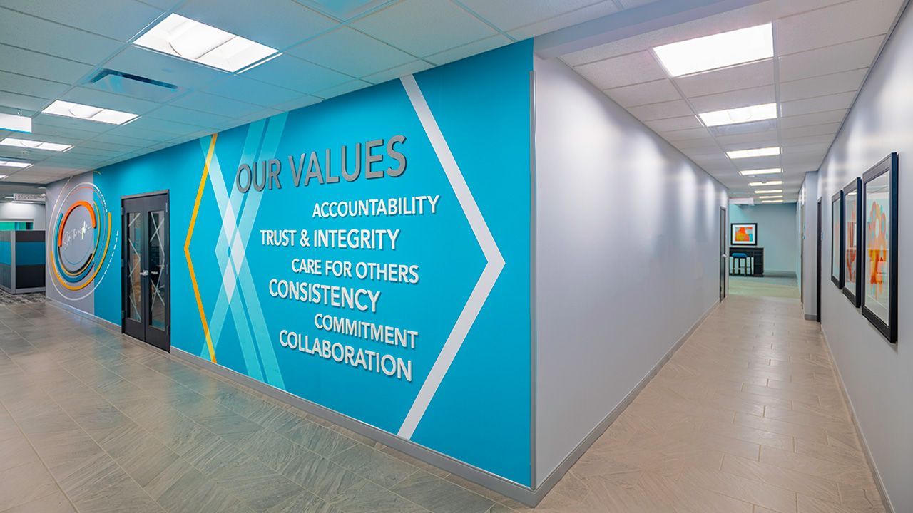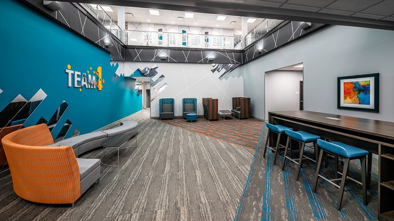 The remodel allowed CCU to bring employees from various locations into one building where the staff could benefit from new open collaboration spaces, and their work culture could be celebrated in branding and graphics throughout the building.