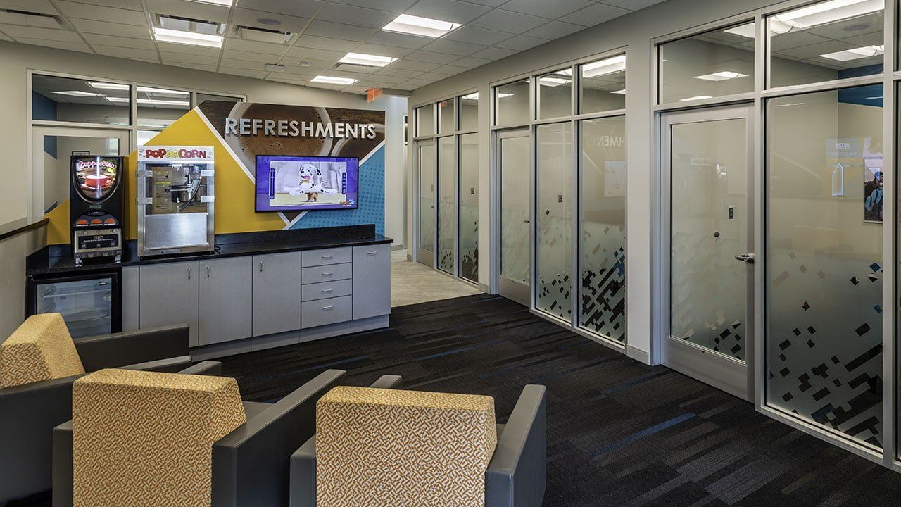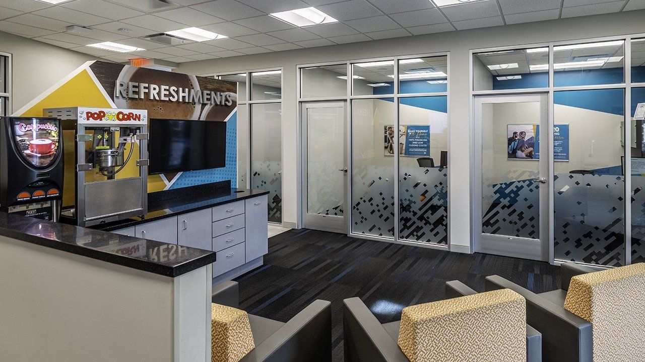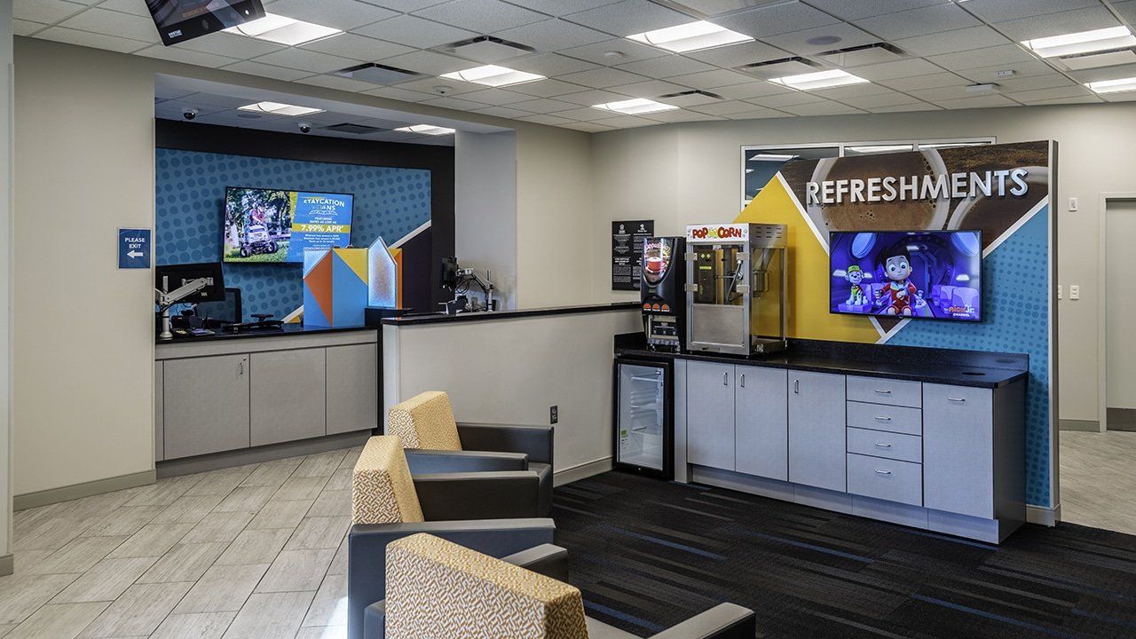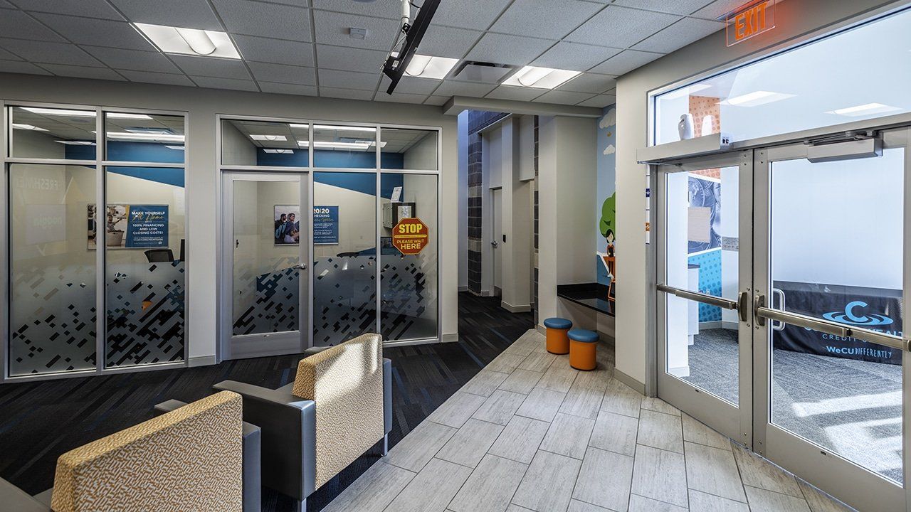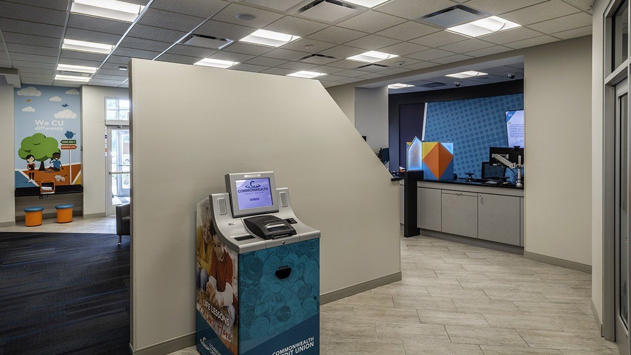 The building used for Commonwealth Credit Union’s Cane Run branch, was acquired from a former credit union and needed an extensive refresh. This remodel exposed many challenges for the design team involving a circular layout that was not consistent with Commonwealth’s typical branch design.