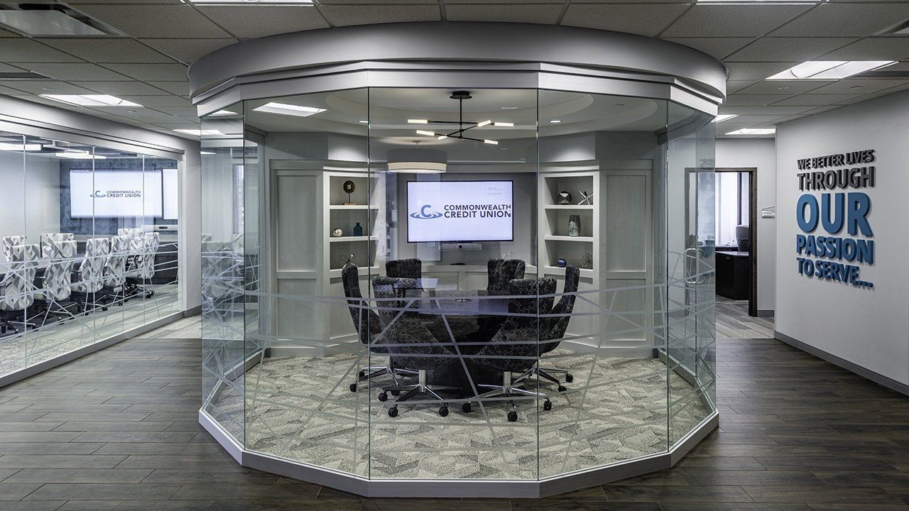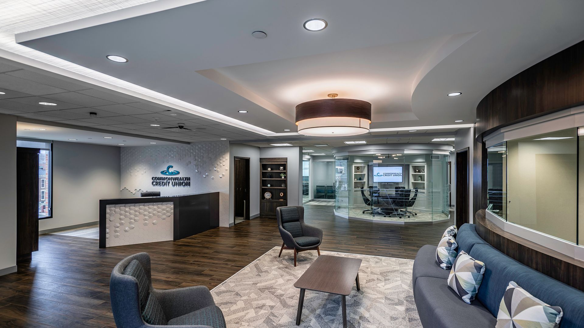 The graphics selected reflect the internal values & beliefs of Commonwealth Credit Union and the interiors are complimentary to Commonwealth’s branches, but elevated to include warm wood elements, reflective of an elegant executive suite.