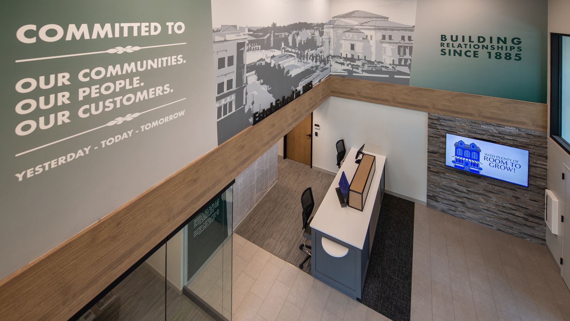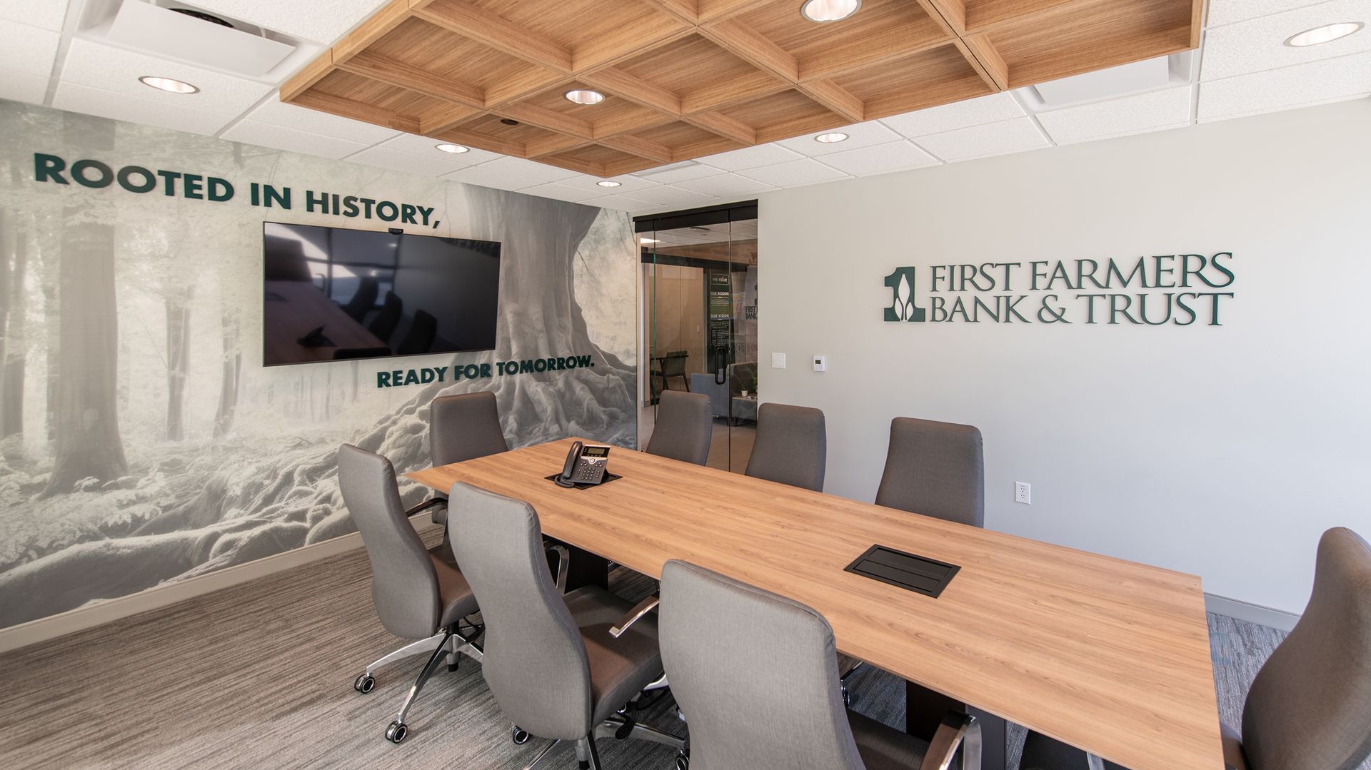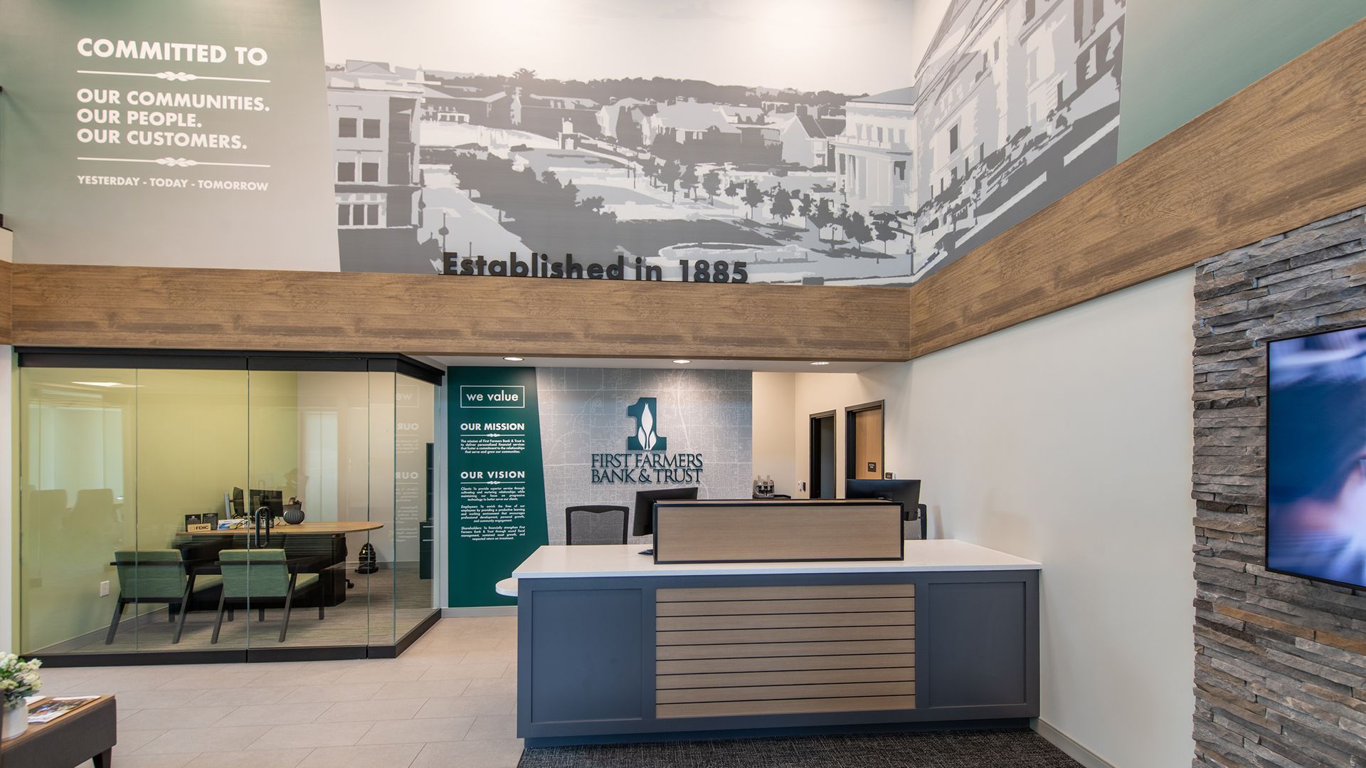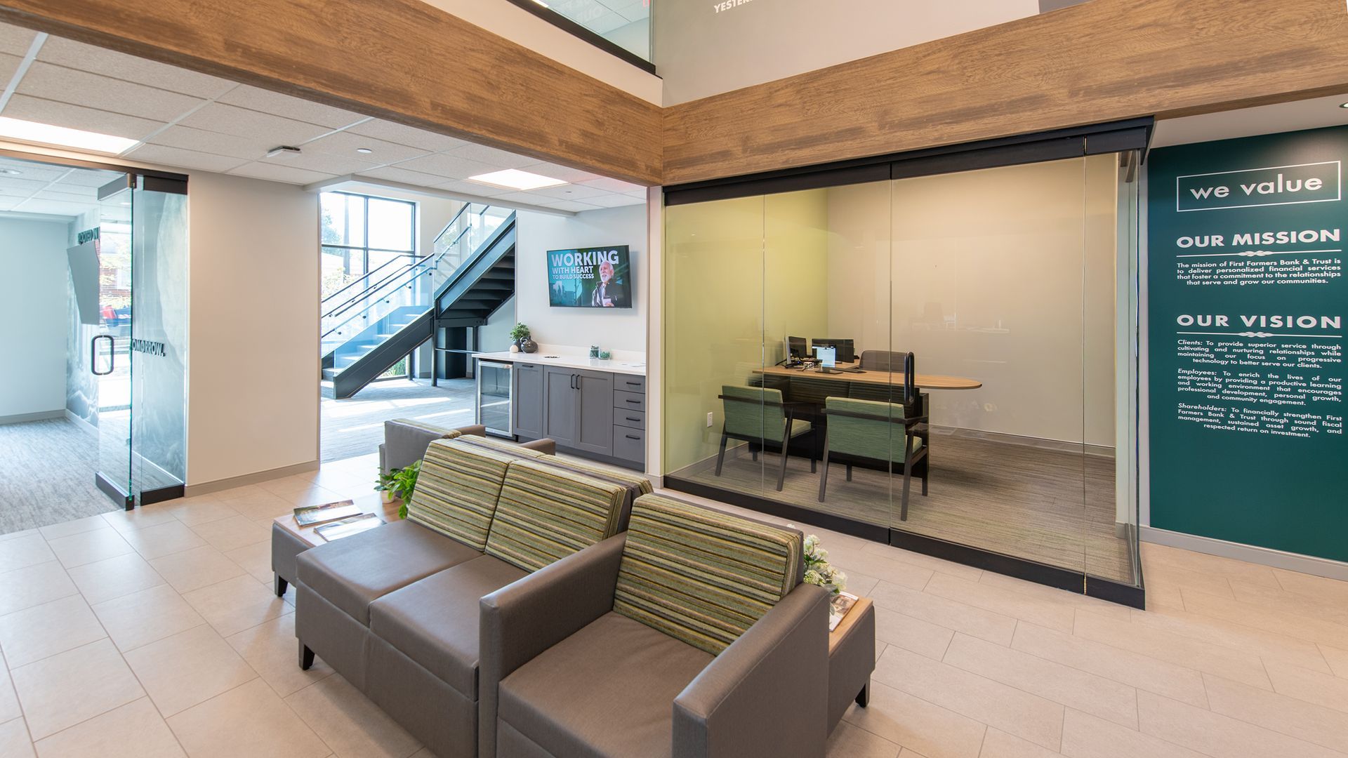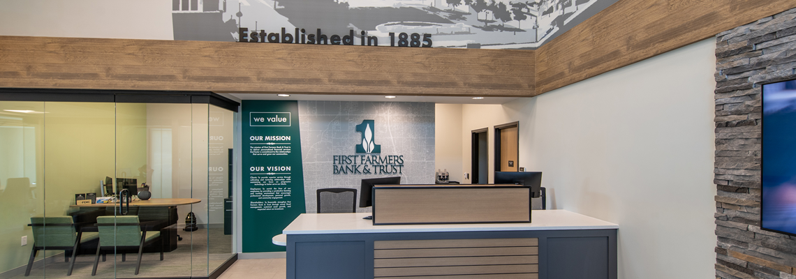 The branch’s clean lines, natural light, and open layout reflect First Farmers’ concierge-style approach offering a full suite of banking services including lending, mortgage, wealth management, and retail banking in a welcoming, community-focused environment.