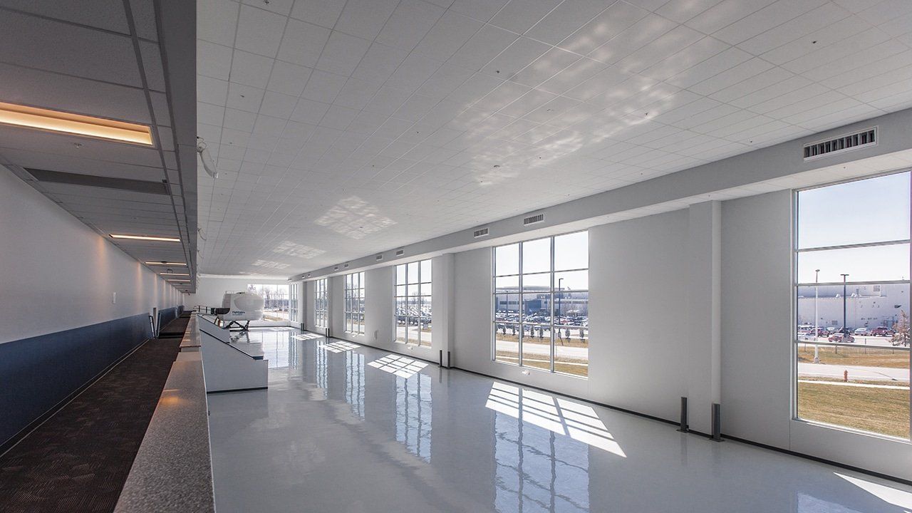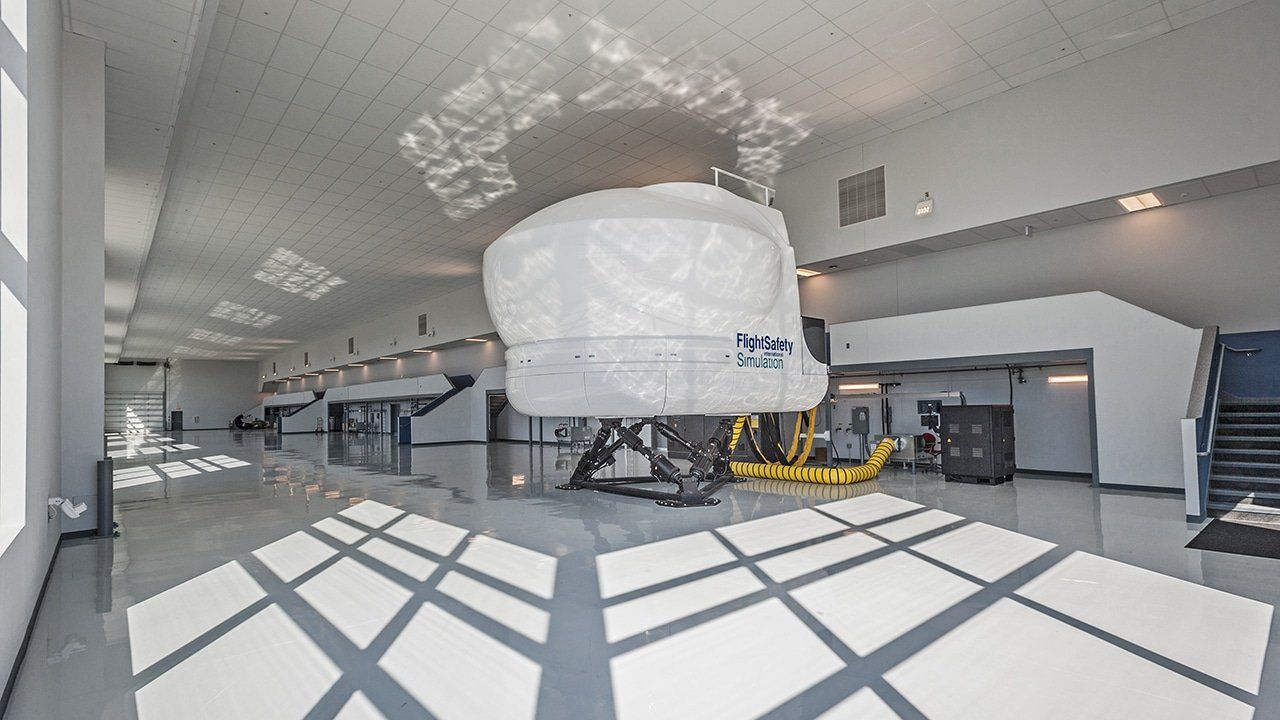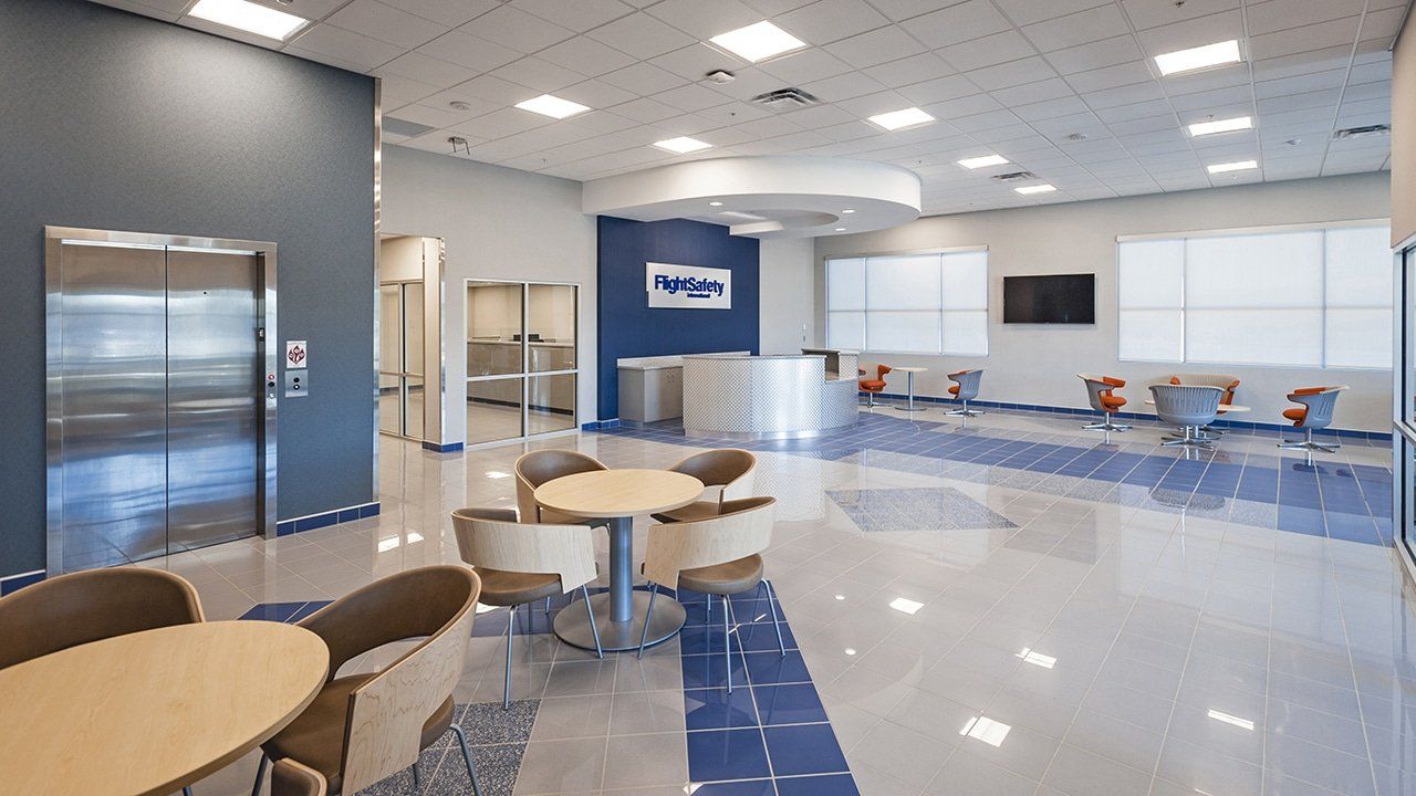 Phase One of Flight Safety’s new training facility is a concrete tilt up building. K4 worked closely with Flight Safety to ensure an efficient layout consisting of advanced technology pilot and maintenance training classrooms, briefing and debriefing rooms, graphical simulators, a large open bay to hold six full flight simulators along with administration offices. It was critical to the client to showcase flight simulation in progress. This was achieved through the use of a glass corner looking into the flight simulation bay. Phase two will almost triple the capacity for training.