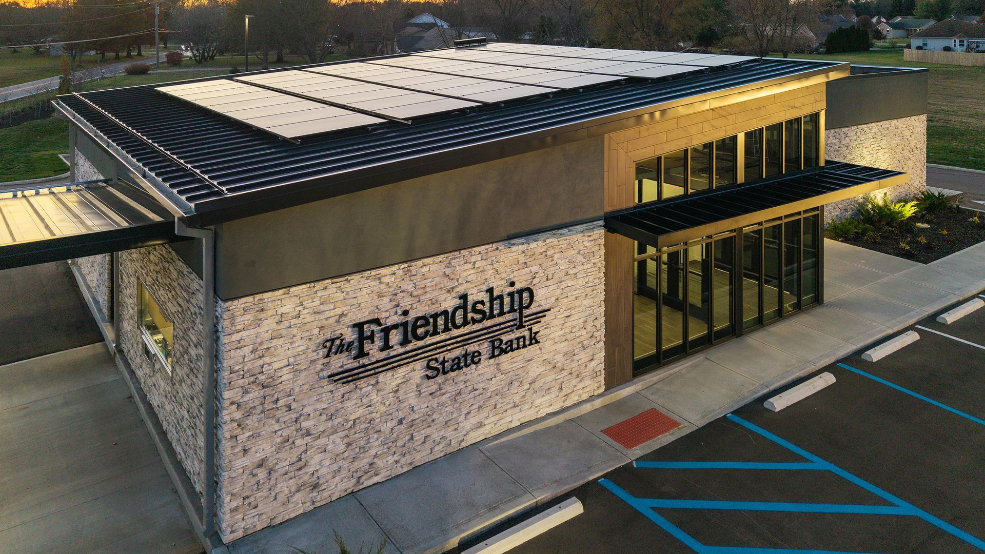 The building incorporates active solar technology, with rooftop solar panels contributing to reduced energy consumption and long-term operational savings—aligning with Friendship’s forward-thinking approach to stewardship and efficiency. Accessibility, durability, and ease of maintenance were also key drivers in the design, ensuring the branch can serve the Bright community reliably for years to come.
