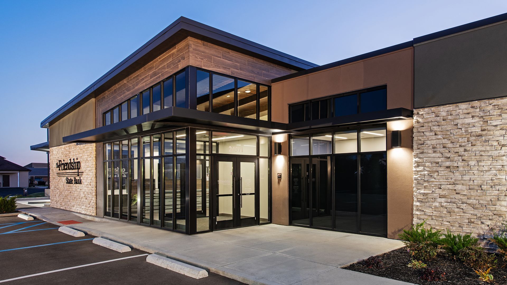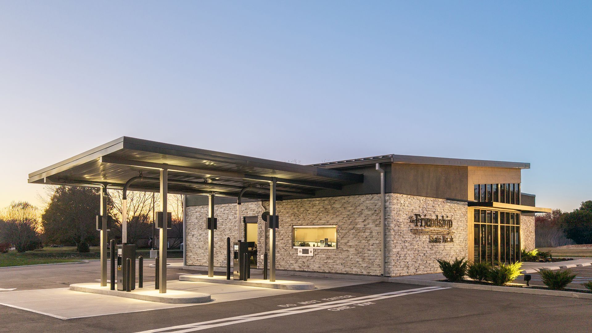 K4 Architecture + Design partnered with Friendship State Bank and Maxwell Construction to bring a new Bright, Indiana branch to life—one that reflects Friendship’s mission of community-centered, customer-focused banking while positioning the institution for long-term operational success. Located at the intersection of Stateline and Sneakville Roads, the branch serves as a modern, welcoming gateway for customers while supporting efficient, secure day-to-day banking operations.