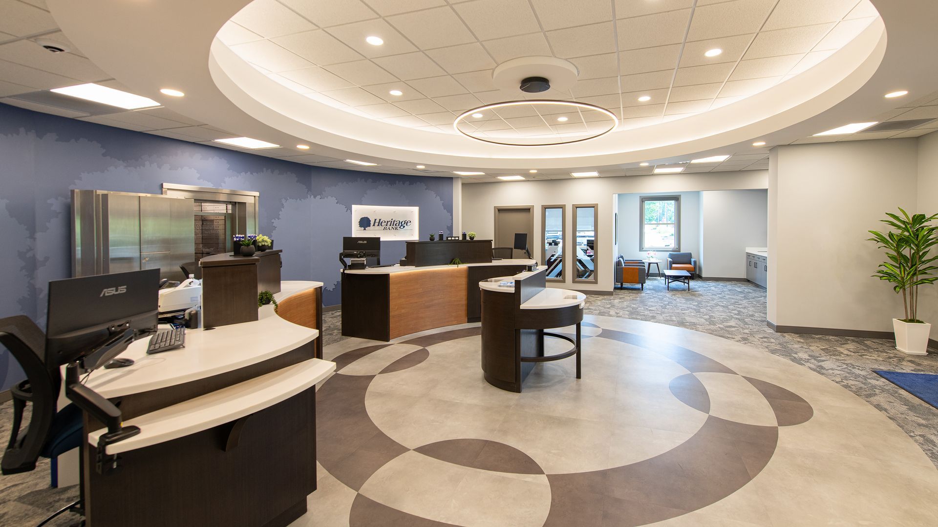 The significantly larger facility accommodates standard banking operations and houses a centralized training department to support Heritage’s growth and staff development. Enhanced ingress, egress, and ample parking prioritize customer convenience, while modern, functional interiors reflect the bank’s community-driven mission.