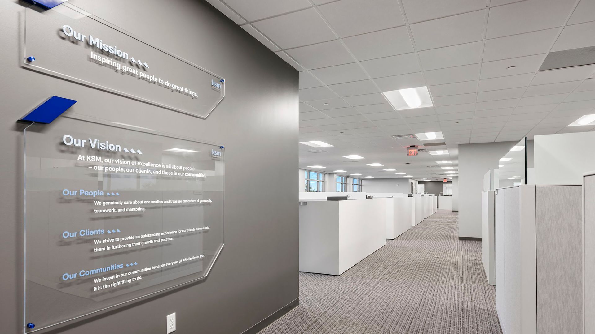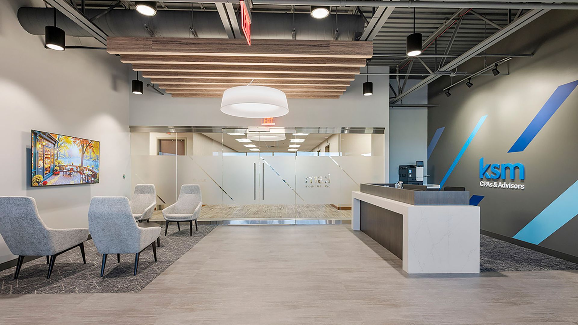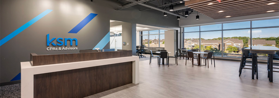 K4 Architecture and Design is excited to share the completion of a transformative project for KSM, a leading advisory, tax, and audit firm. The newly relocated Cincinnati office, at The Landings in Blue Ash, embodies a modern workspace that aligns with KSM’s dynamic, people-centric culture.
