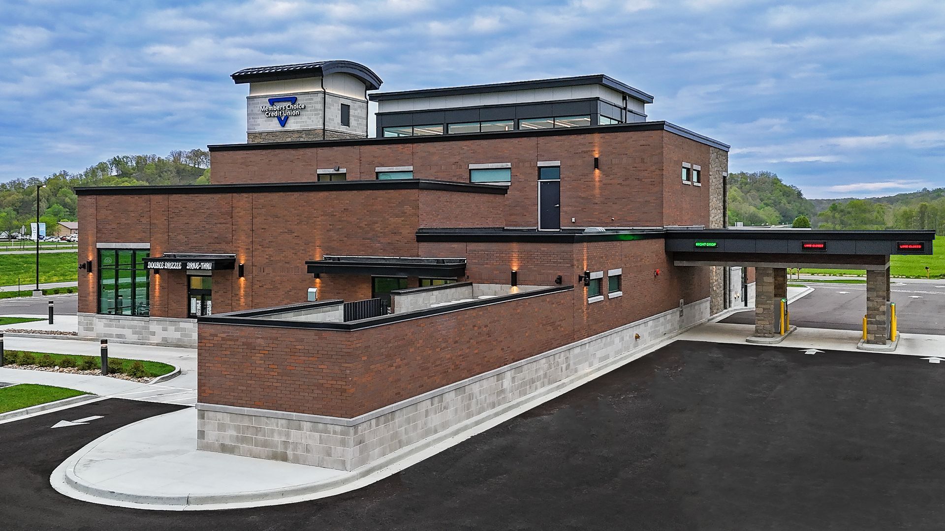Members Choice challenged K4 Architecture + Design to create a signature regional office visible from Interstate 64, with a strong central entry. The design was intended to serve as a reduced scaled prototype for future smaller branches, with the concept set to be applied to the Greenup branch in the near future.