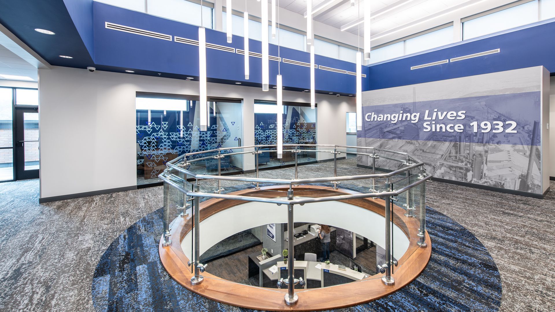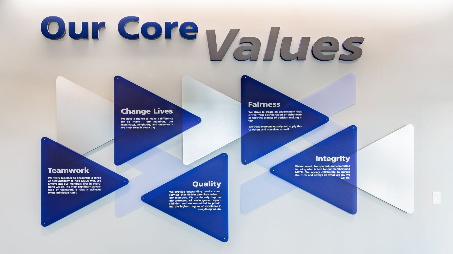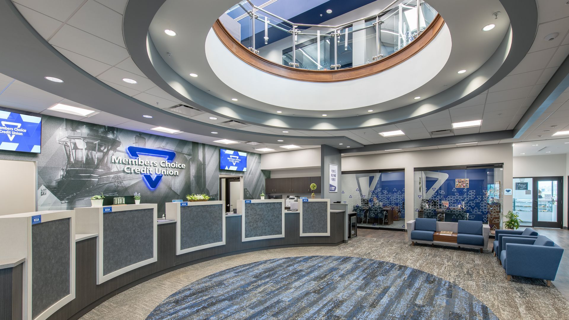 In crafting the graphic design for Member's Choice Credit Union, K4 faced the challenge of integrating the credit union's rich history while maintaining brand consistency. We successfully incorporated elements inspired by the steel industry, the foundation of the credit union, with some graphics printed directly onto brushed aluminum, serving as a constant reminder of its roots. As this was Member's Choice CU's inaugural project with K4, we collaborated extensively, exploring various concepts and coordinating with interior designers on patterns and colors to ensure a harmonious environment across all spaces.