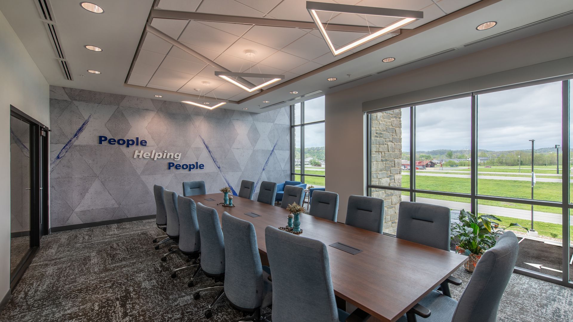 The building unites Carter and surrounding counties' various members and community needs, welcoming them to a first-of-its-kind shared space that combines financial services with a community room and a bakery with dual, but not competing drive thru's.