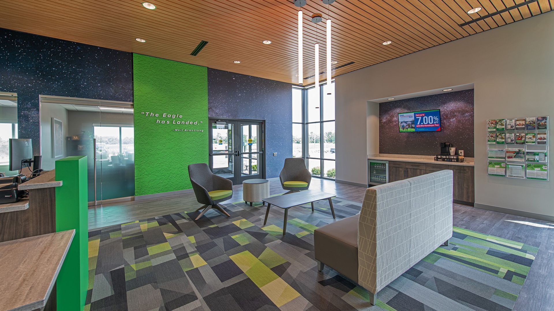 At K4 Architecture + Design, we are proud to continue our long-standing partnership with Superior Credit Union, celebrating the opening of their 25th location. This new branch, located across from the Armstrong Air and Space Museum in Wapakoneta, OH, uniquely incorporates Neil Armstrong and space-inspired graphics, reflecting its historic neighbor. The new location is close to I-75, located at 413 Apollo Drive, allowing customers to have easy access for their banking needs.