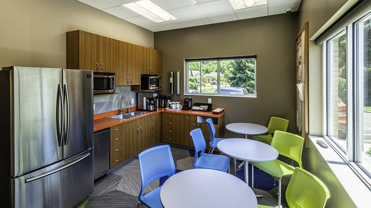 Enlarging the branch increased the capacity of the interior and drive thru services. The community room and terrace provide an amenity to Fairfield, its member community.