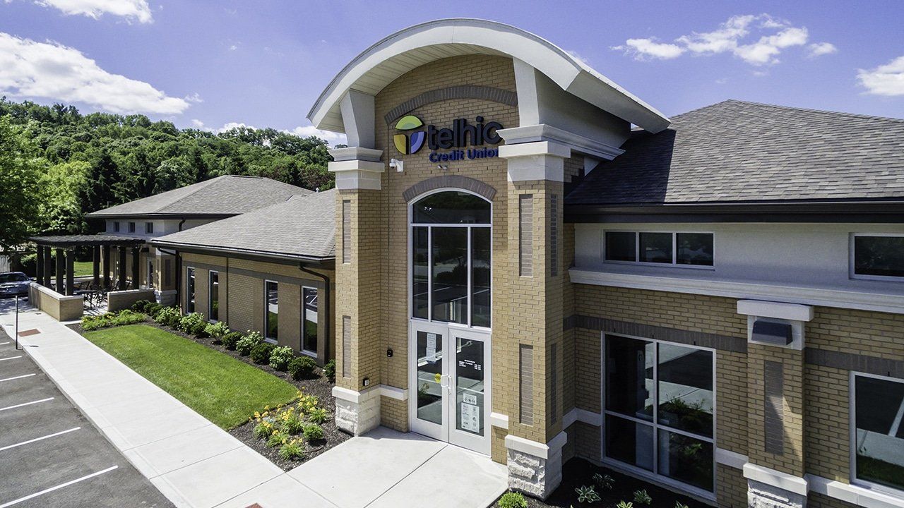 Telhio Credit Union’s goals for the enlarged/renovated facility were to add capacity to the existing branch, update the interior to their current prototype standards, and add community spaces to the branch. The design challenges were to open up the existing branch and implement prototypical elements on the exterior while remaining complementary to the existing building.
